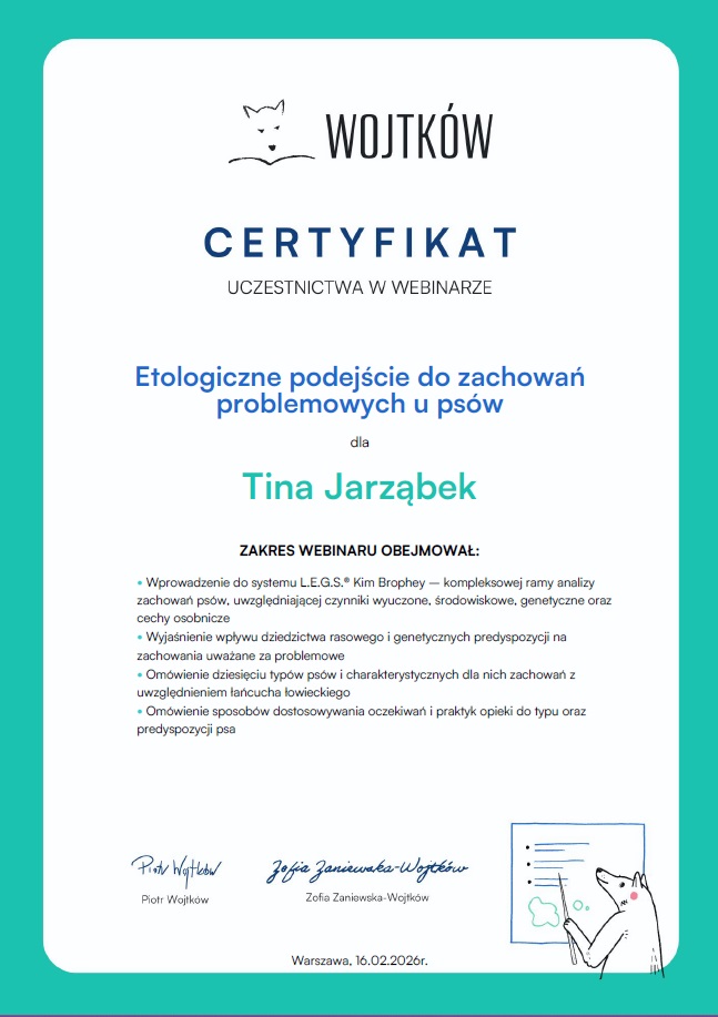 . Mieliśmy także możliwość, dzięki Wojtków Psiedszkole uczestniczyć w 3h webinarze poświęconym szeroko pojętej tematyce etologii psów.