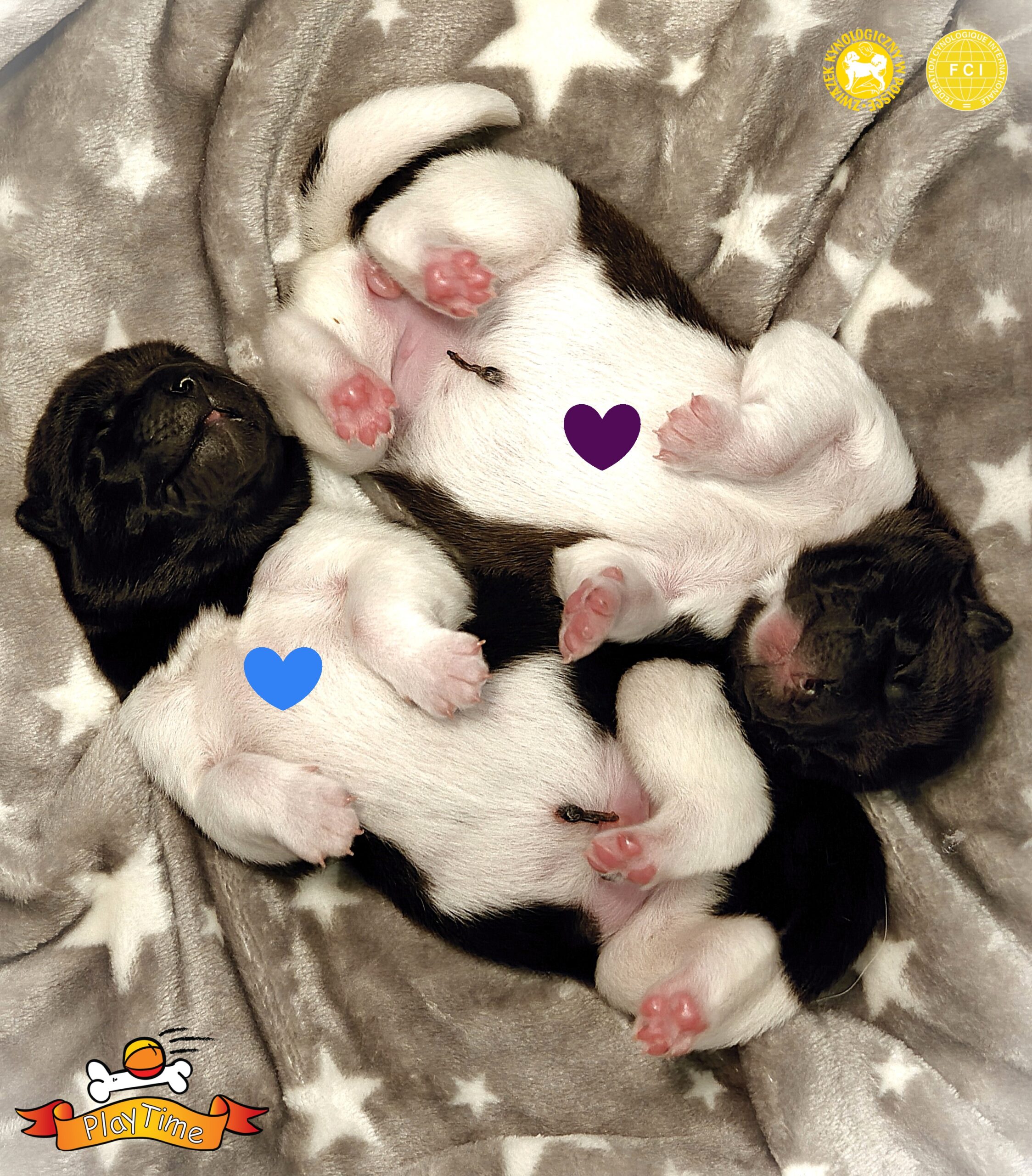 Pierwszy raz w naszej hodowli ojcem szczeniąt został nasz reproduktor bardzo dobry eksterierowo oraz charakterologicznie, z bardzo dobrym rodowodem, wyhodowana przez nas samych samiec PlayTime (FCI) FRANCISZEK. Ma na swoim koncie liczne osiągnięcia wystawowe. Obecnie posiada tytuł Grand Champion Polski, Champion Polski i Młodzieżowy Champion Polski, a także rozpoczęte starania o tytuł Interchampiona. Pies o pięknej, masywnej, idealnej i samczej w wyrazie głowie z całą czarną maską na pysku; masywnej oraz postawnej sylwetce ciała ; szerokiej klatce piersiowej; grubym kośćcu; idealnej linii górnej oraz dolnej a także świetnym kątowaniu kończyn tylnich i pięknym umaszczeniu czarno -brązowym oraz prawidłowo osadzonym i noszonym ogonie. Reproduktor o idealnym, płynnym i zgrabnym ruchu i bardzo rodzinnym, ciepłym i wesołym charakterze. Jest pod stałą opieką weterynaryjną. Ma wykonane wszystkie niezbędne badania aby być reproduktorem.